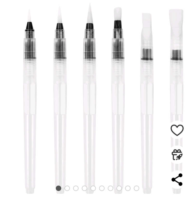 워터브러쉬는 몸체에 물을 채워 넣어 물통 없이 간편하게 채색을 할 수 있는 도구로, 아크릴 물감, 수채화 물감, 고체 물감, 먹물, 크레용 등 다양한 채색 도구를 활용하여 그림을 그리거나 캘리그라피, 미술 수업 등에 활용됩니다.