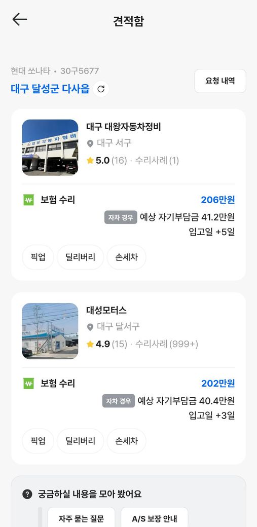 차량 수리 예상 견적은 약 200만원 입니다.