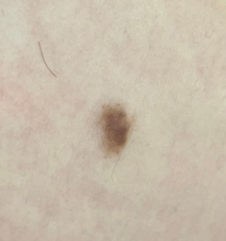 5년간 크기변화나 색조변화가 없었다면 단순한 점일 가능성이 높습니다. 불안하시면 피부과 전문의를 찾아가보시는게 좋겠습니다.