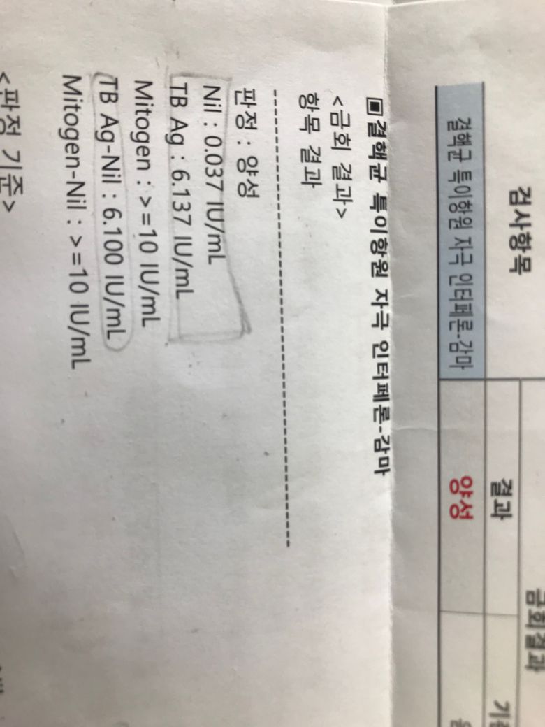 결핵 검사에서 사진과 같은 결과를 받았습니다. 잠복결핵인가요? 치료를 받아야 하는지 알고 싶습니다.