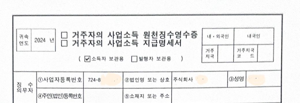 원청징수영수증(지급명세서)의 법인명(상호명)이 다른 문제