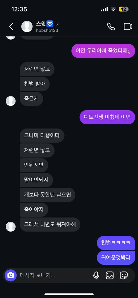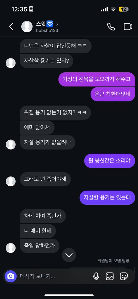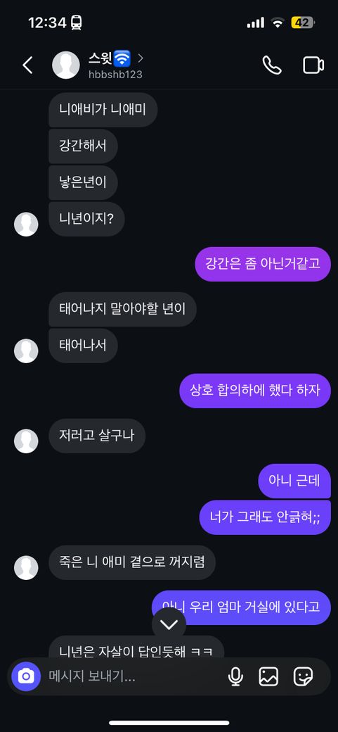 또한 오전 11시경의 메시지는 제가 제 친구들에게 화면공유를 통하여 실시간으로 대화내용을 보여주고 있었습니다. 제가 볼땐 통매음은 안될것같고, 모욕죄, 명예훼손죄, 협박죄 중에 해당되는게 있다면 알려주시면 감사하겠습니다.