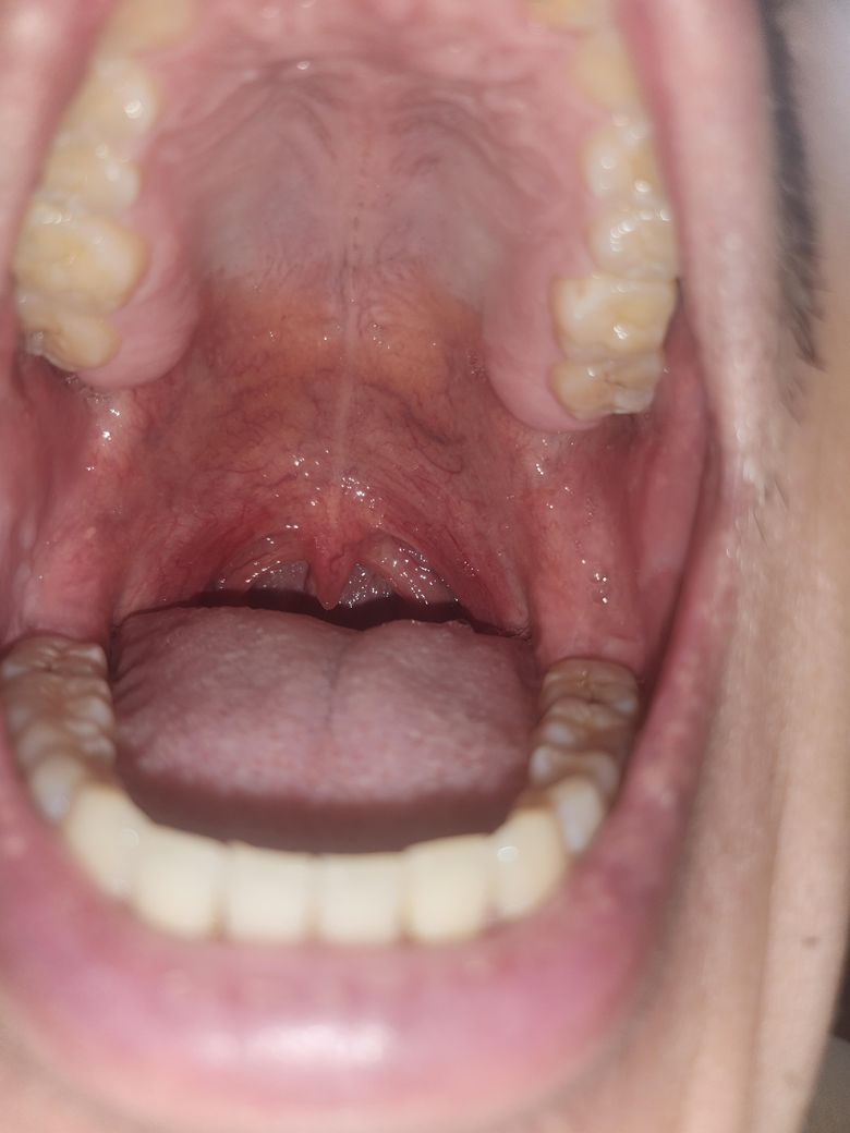 목젖 좌우로 연결된 부분이 빨간색으로 완전히변해있는데 아픈거 불편한거하나도없고