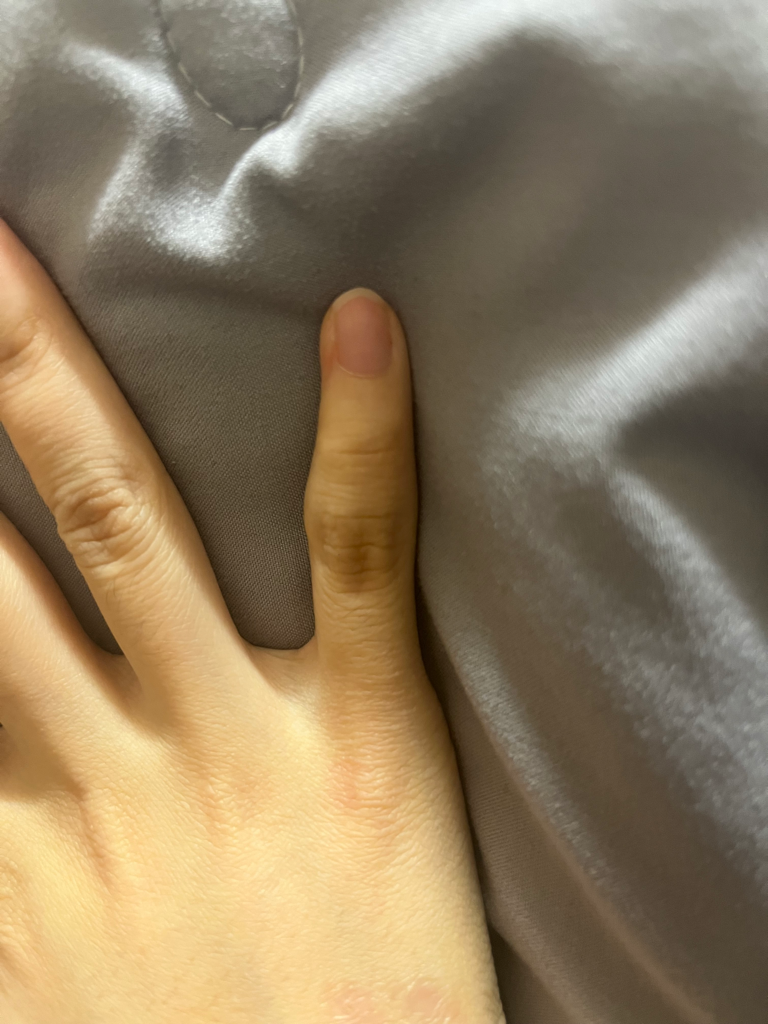 사진 속 손가락이 튀어나온 것으로 보이는데, 이는 과거의 부상으로 인한 것일 수 있습니다.