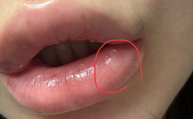 안냥하새요 입술필러 2일전에 맞았는데 오늘보니깐 빨간색으로 동그라미 칠한 부분이 히얗게 올라왔어요ㅠ 병원에 가봐야하나요?