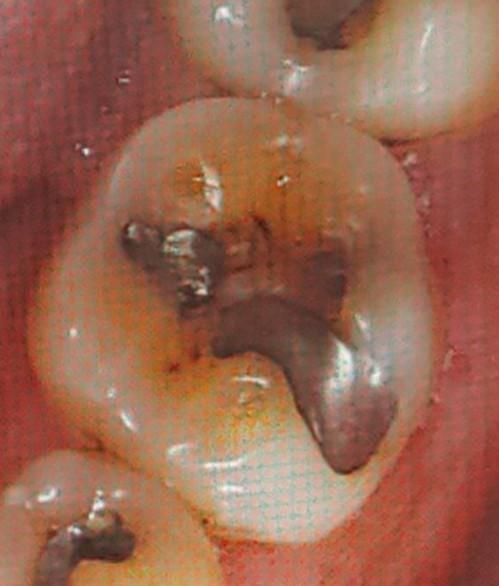 위 상태로 봐서는 기존 아말감이 굉장히 깊게 수복되었고, 아말감이 깨져나가면서 하방 이차충치가 의심됩니다. 이런 경우 치수염이 유발되어 신경치료 가능성도 있긴하나 현재 증상이 없다면 간접신경치료 내지는 부분신경치료도 가능할 것 같습니다. 그렇게 해서 떼울 수 있다면 이제 재료는 선택입니다. 아말감으로 다시 해도 되고 아니면 레진이나 금/세라믹/레진 인레이를 선택하셔도 됩니다. 요샌 아말감은 거의 안씁니다. 저렴하게 하고자 한다면 레진으로 떼우는 것도 가능할 것 같습니다.