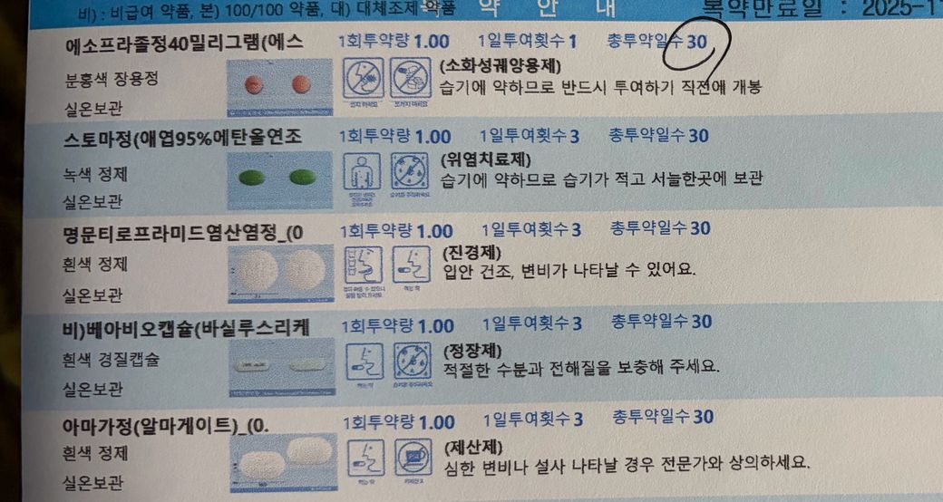 옮기기 전에도 주요 치료약은 하루 한번 복용하는 약이었긴했습니다. 진경제 같은걸 3번으로 처방을 하셨는데요. 굳이 진경제가 필요한 상황이 아니라서 그게 빠지고 위장운동 촉진제가 들어가면서 1번으로 바뀐 것 같습니다.