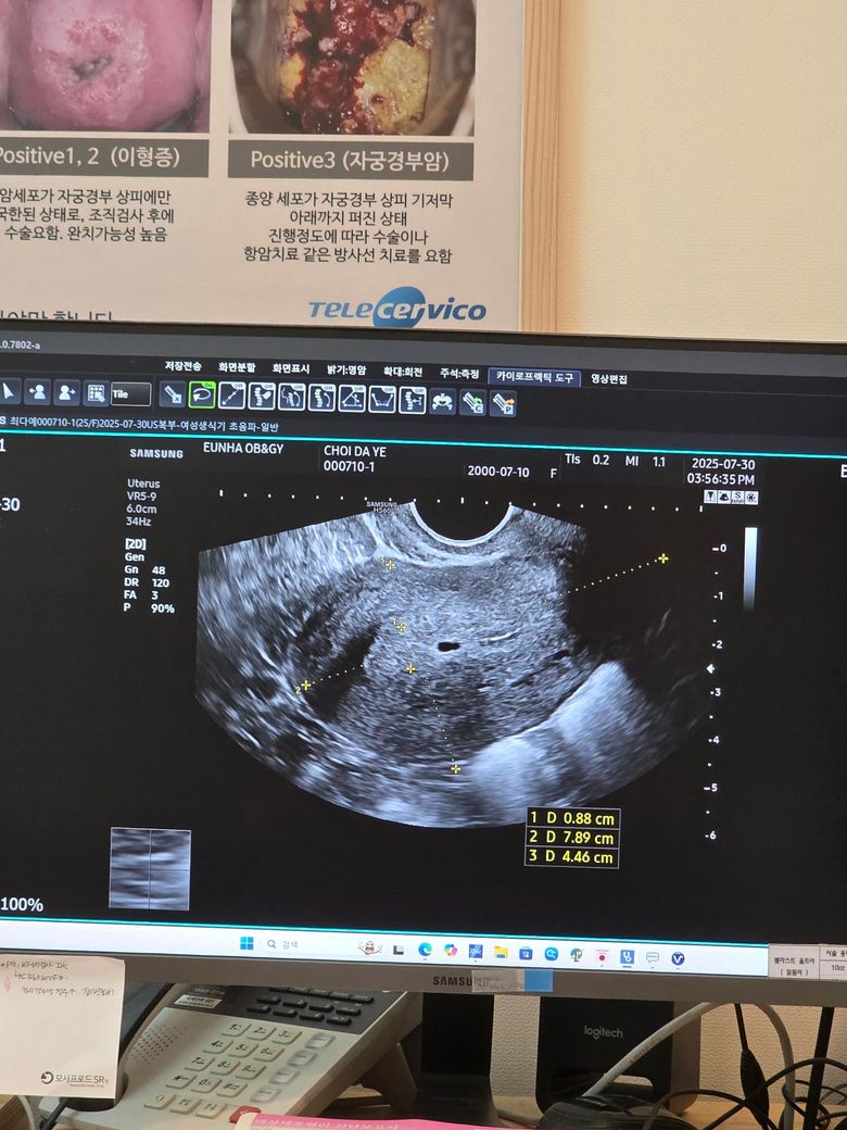 7월 말 생리불순과 복통으로 산부인과 방문했고,