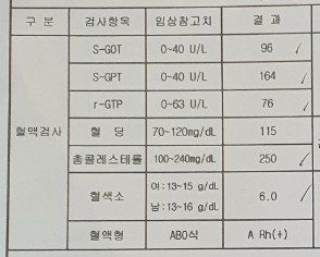 질문하신 내용에 대하여 아래와 같이 답변 드립니다.간수치도 높은 것도 문제지만, 혈색소가 상당히 낮으시네요.