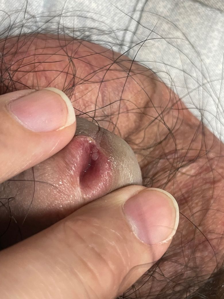 귀두의 요도 입구 점막에 작은 결절성 융기 병변이 관찰되고 있는데 곤지름에서 관찰되는 사마귀 양상의 병변으로 보기는 어려워 곤지름 가능성은 낯습니다. 이전에 곤지름의 과거력이나 인유두종 바이러스의 감염이 확인되었다면 병변의 변화를 관찰해 보시고 변화가 있다면 비뇨의학과 진료를 보시는 것을 권해드립니다.