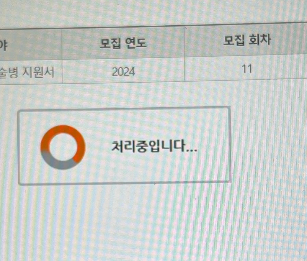 오늘부터 군지원 받길래 통합지원서에서 접수 했는데 다 끝나고 나서 처리중 입니다 로딩만 계속 뜨는데 그냥 나가도 되는건가요? 아니면 기다려야 하나요?