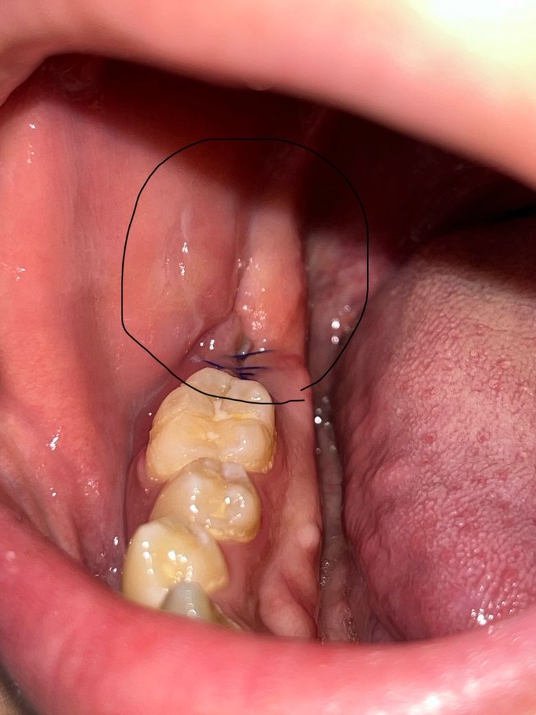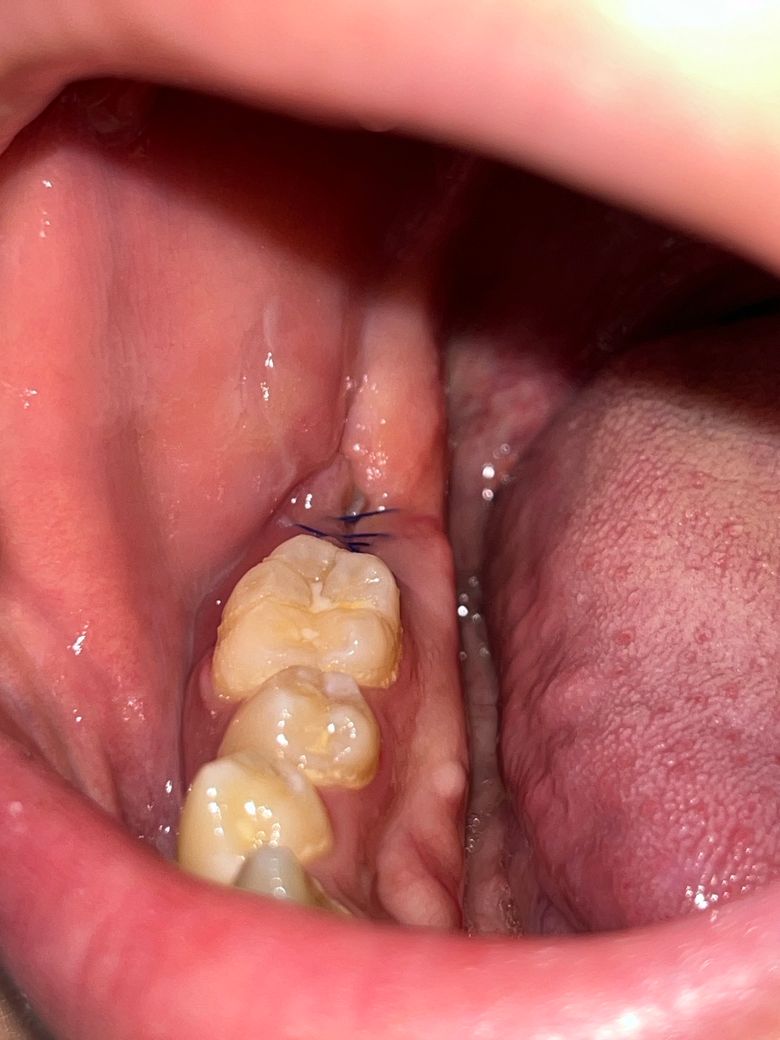사진상으로는 아물고 있는 과정으로 보이며 해당부위 소독을 위해 헥사메딘 가글액을 사용하여 관리하여 주길 권합니다.