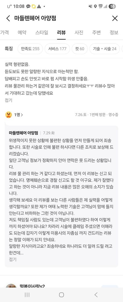 컷트 과정중에서는 계속 저를 가르치려는 듯한 말투로 머리관리를 잘못한다, 왜 머리가 상했겠냐 등과 같이 말투에서 기분나쁨을 느껴 컷트가 다 끝난후 리뷰를 작성하였습니다. 리뷰는 시잔 참고부탁드립니다.
