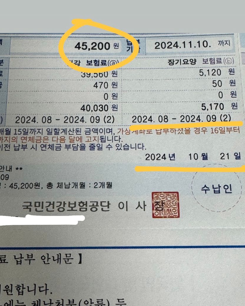 사업장 미납안내 우편에는 45240원이 찍혀있습니다