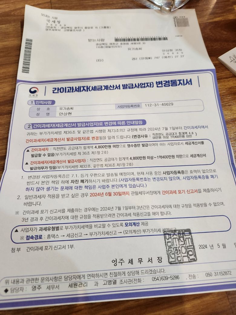 계산서 발급가능한 간이과세자로 변경된다고 하는 것같은데