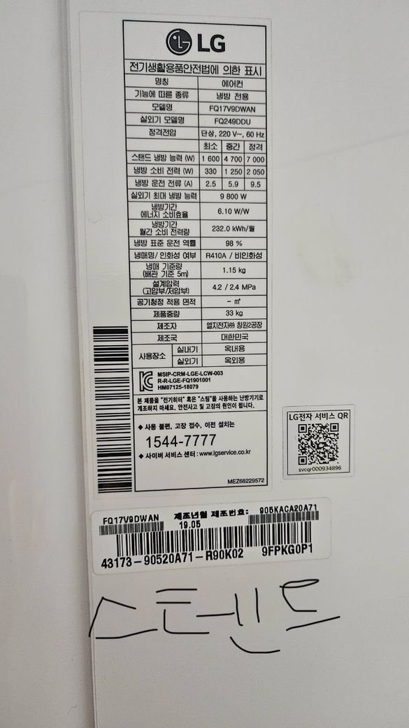 에어컨은 전기를 많이 소비해서 무조건 1등급으로 사야합니다^^;;