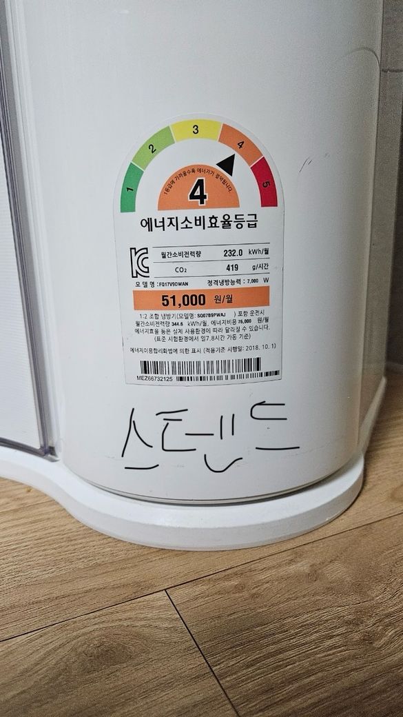 에어컨 중고로 사려고 합니다 2019년이라 4등급이라고 4등급인건 걱정말라고 하시는데 전기세는 작게