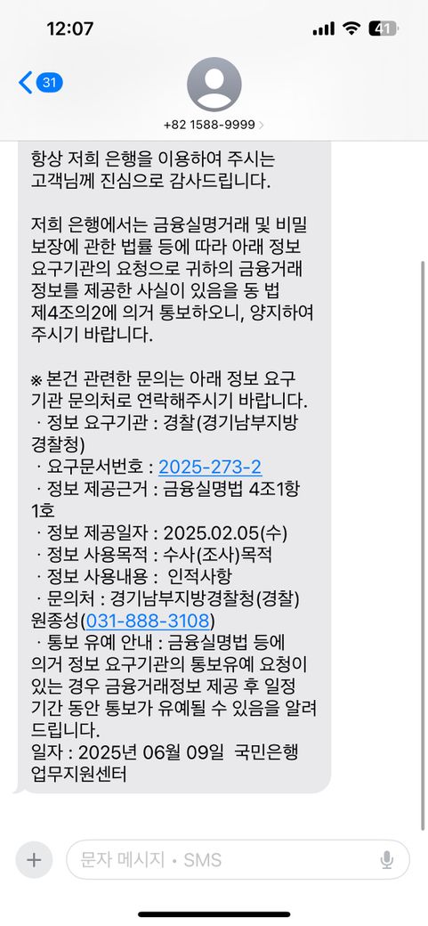 국민은행에서 오늘 갑자기 이런문자가 왔습니다.