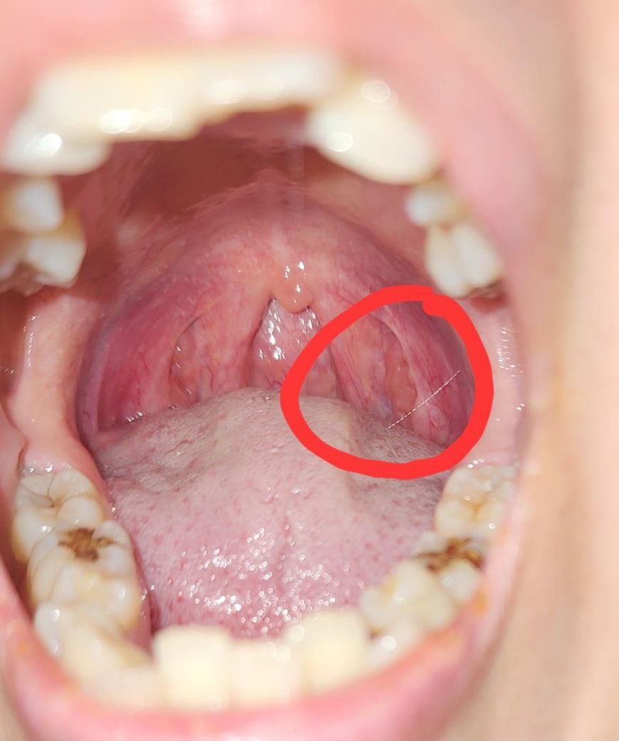 최근에 볼쪽에 통증이랑 목이 막힌기분이드는데 편도염이나 암일 가능성 있을까요 약간 부어보이고 하얀부분이있어요 혹시 암일가능성도 있을까요?