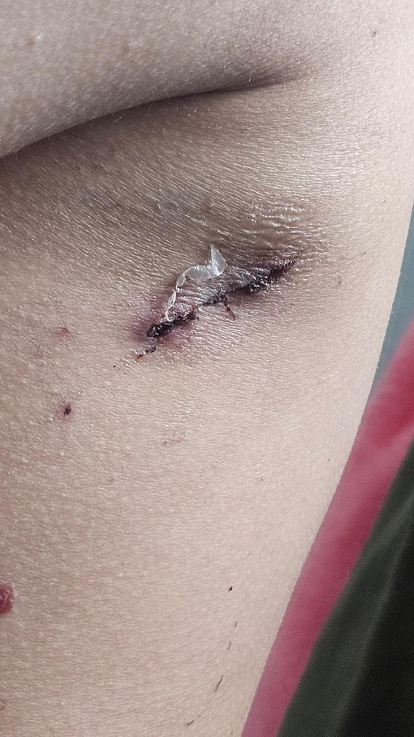 근데 상처딱지 위에 비닐?같은게 붙어있는건지 박혀있는건지 존재하고,