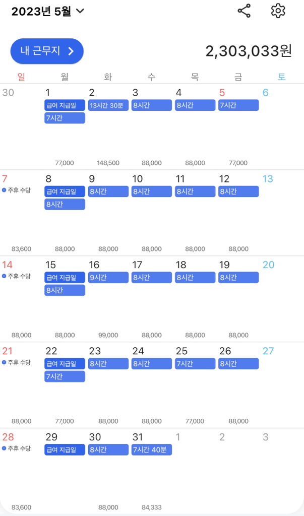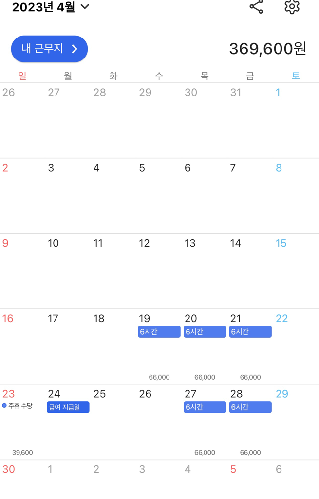 근무기간은 4/19~6/2일까지 근무했습니다.