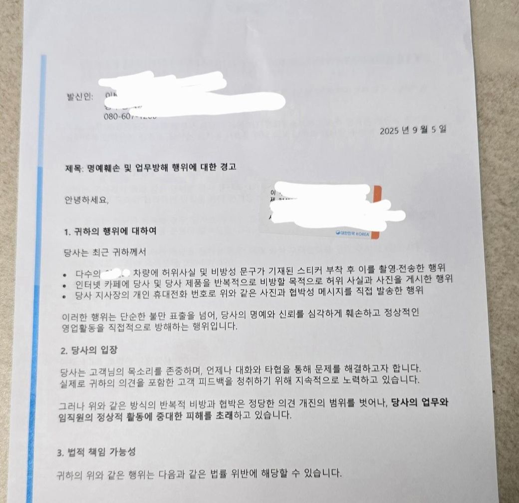 자동차 제조 회사에서 내용증명 받았는데요