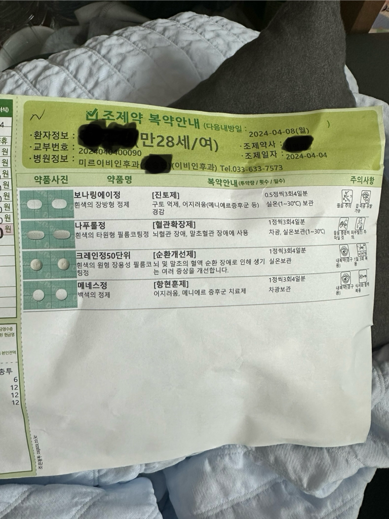 이 약들은 이석이 자리잡을 때까지 도와주는 약이고 어지럼증 증상도 약하게 만들어줍니다.