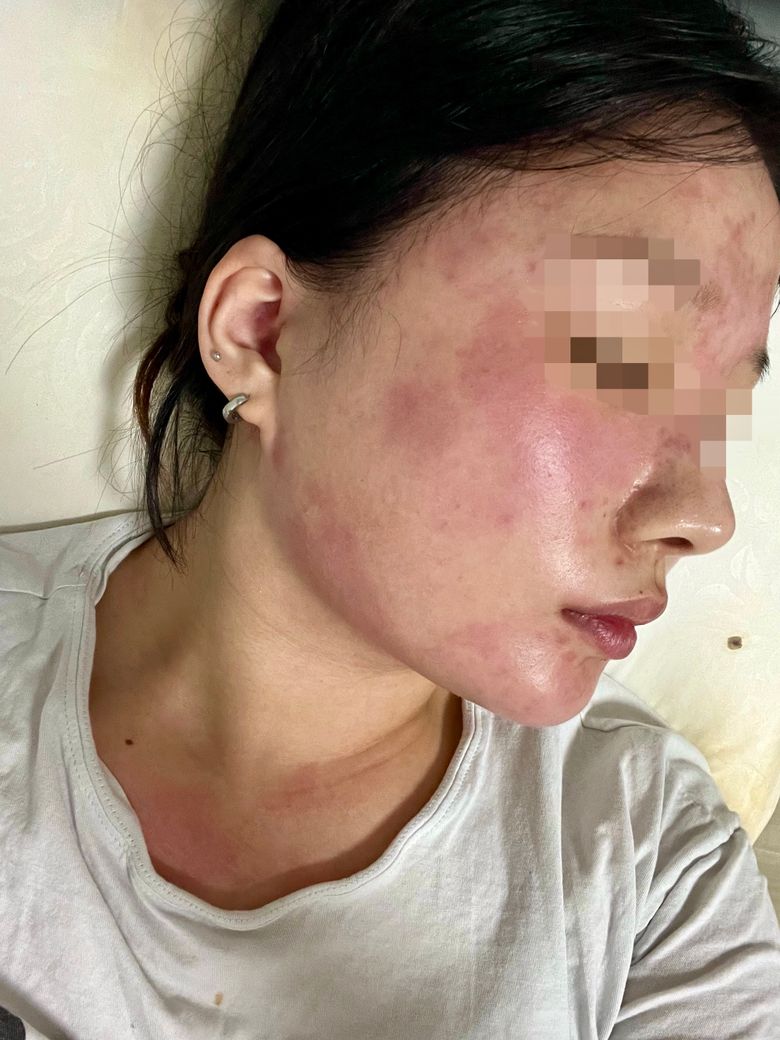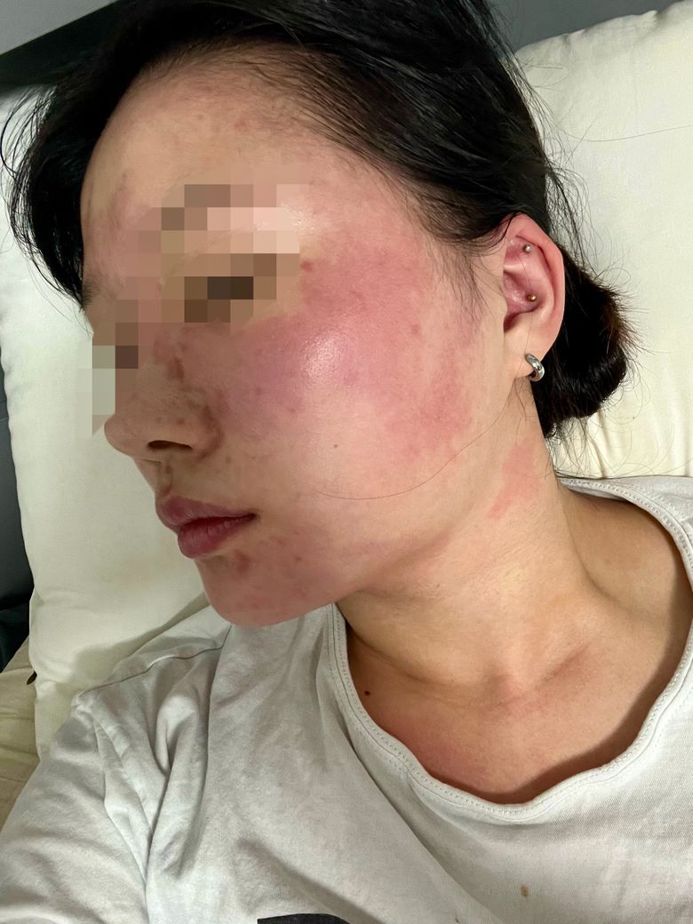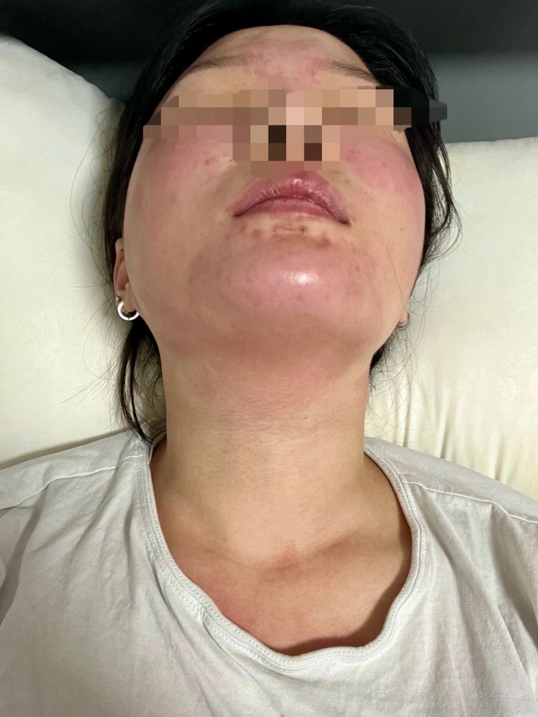 얼굴 및 목,쇄골,가슴으로 발진이 올라옵니다