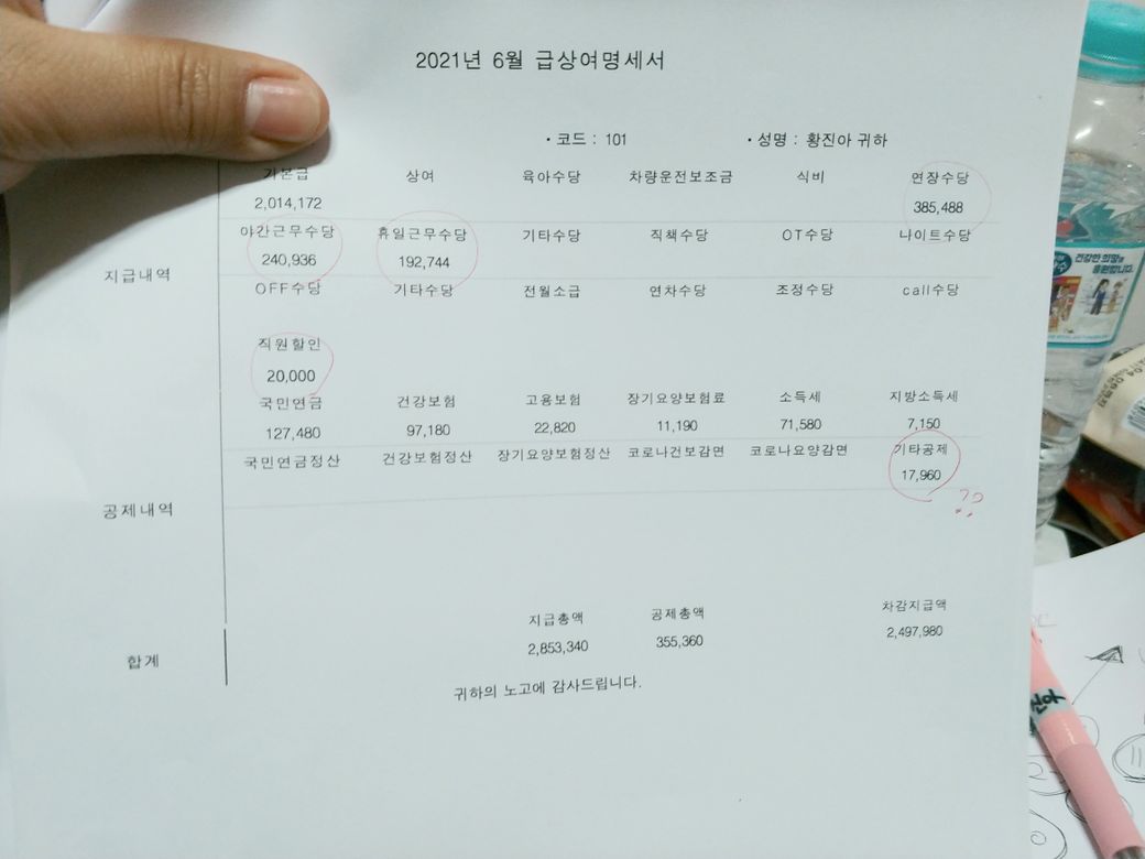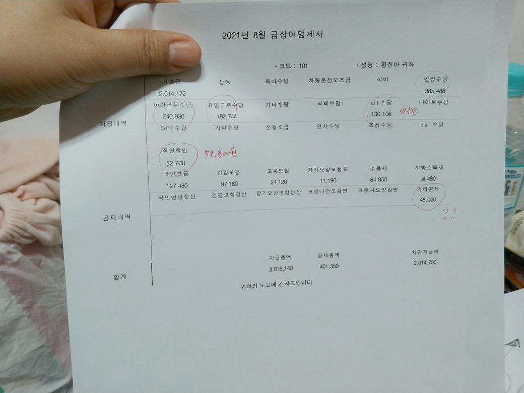 급여명세서를보니 기타공제로 병원에서 카드결제한금액비슷하게 급여에서 공제가됐는데 뭘까요? 병원에 따져야할까요?