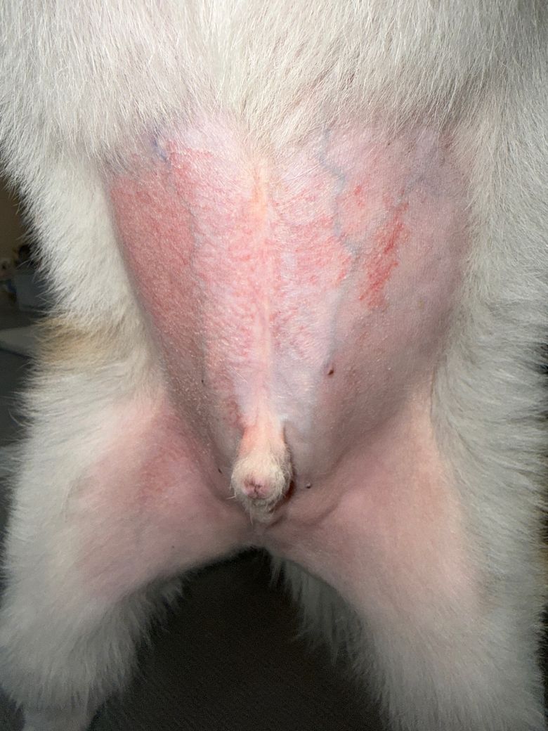 자택에서는 추가적인 스테로이드 사용이나 잦은 연고 도포는 오히려 악화 요인이 될 수 있어, 복부 피부를 최대한 건조하고 자극 없이 유지하는 관리가 중요합니다. 바닥과의 마찰을 줄이고, 과도한 핥기나 긁기를 방지하는 환경 조절이 도움이 됩니다. 목욕이나 소독은 당분간 피하는 것이 좋습니다.