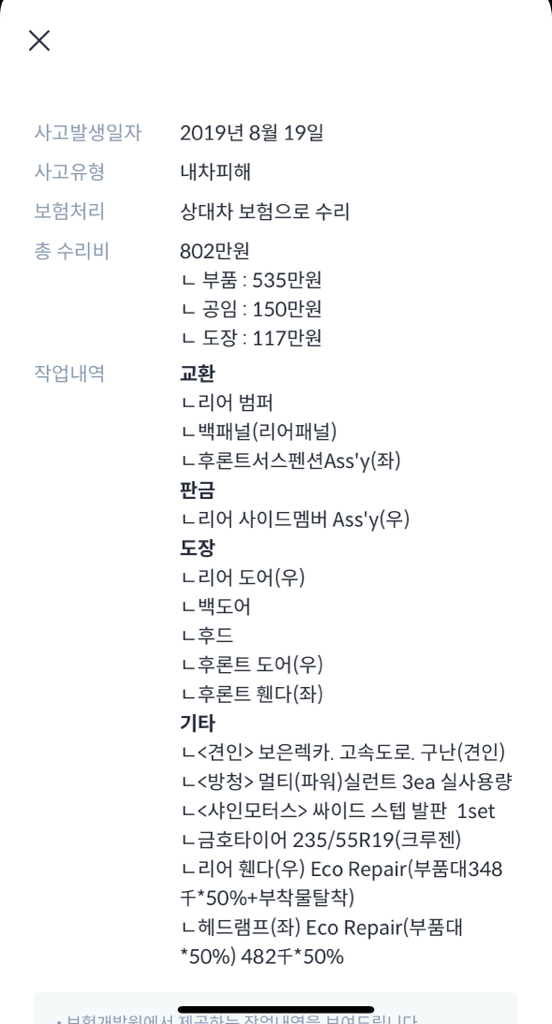 안녕하세요?? 일전에 글을 올렸었는데 글이 미흡한거같아 재질문 드립니다! 뒷빵+조수석휀다 사고인데 18년싣 쏘렌토입니다.