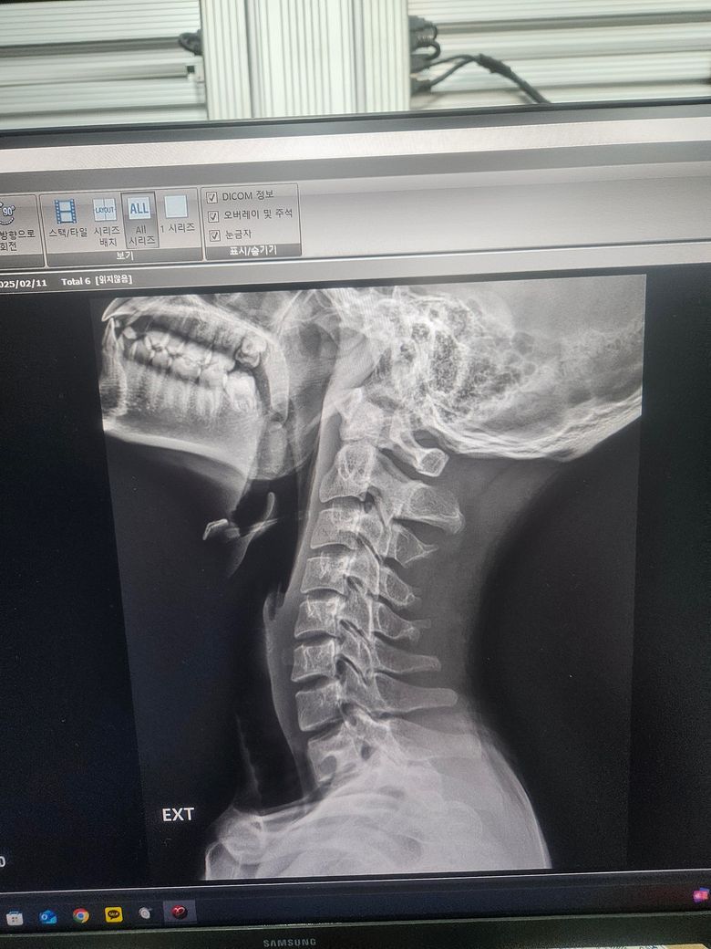 올려주신 엑스레이 사진에서 특별한 이상 소견은 저명하지 않습니다.
