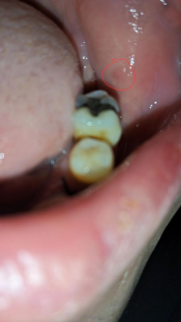 사진에 보이는건 구강암은 아니고 볼살이 씹혀서 생긴 수포입니다. 그냥 터트리면 됩니다.