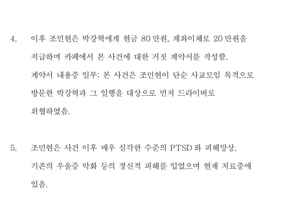 피해자인 저는 현재 극심한 정신적 고통을 겪고 있으며 보복의 두려움 속에 살고 있습니다.