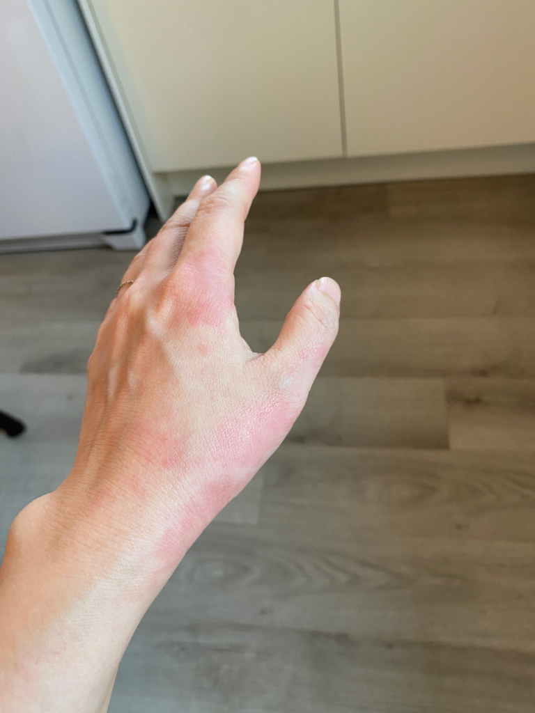 원래 알르레기 체질이고, 접촉성피부염도 잘 생깁니다. 체온이 오르면 열꽃도 잘 생기는데 보통은 두드러기가 몸이나 얼굴에 모기 물린것 처럼 부풀다가 몇시간내로 사라지는데 이번엔 손바닥이 가렵기 시작하더니 손바닥 손등 손가락에 빨간 테두리가 보이는 두드러기가 생겼습니다. 첫날은 불이 날듯 가려웠고 둘째날 가라앉는 것 같아 병원을 안갔는데 3일째에도 위치가 조금씩 바뀌며 여전히 진행중이예요. 수포는 없어요. 최근에 비염(코막힘,콧물)이 심해져 비염약,항알러지약,가래약 처방받았고 원래 먹던 약입니다. 약 때문일까요? 처방받은 내과를 가야하나요? 피부과를 가야하나요? 처방약을 먹기전날에 열이 올라 새벽에 깼었고 손바닥에 붉은점이 약간씩 보이긴 했습니다.