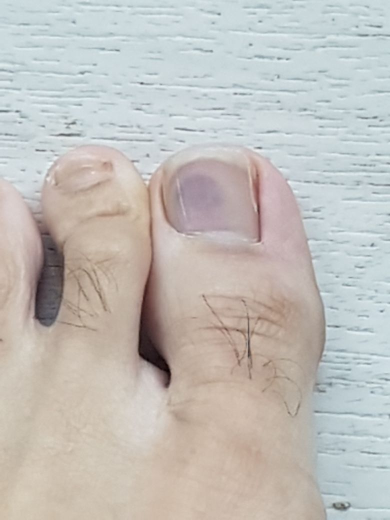 1주일 전에 발톱에서 멍이 보였습니다.
