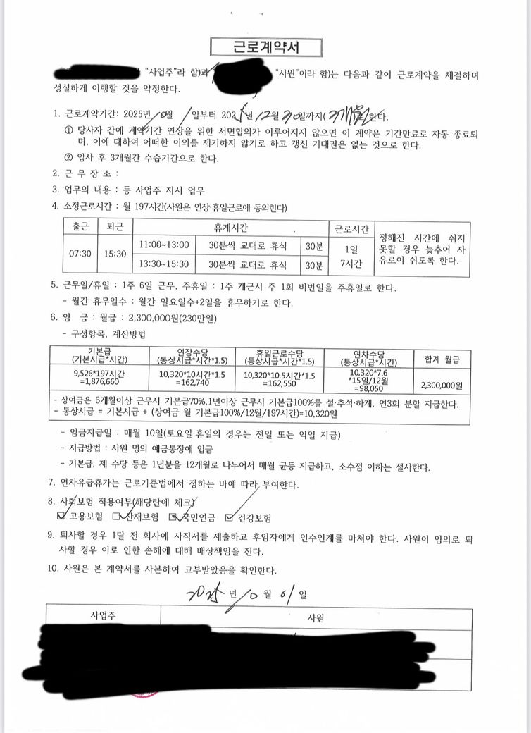 근로계약서 내용 검토 좀 해주세요