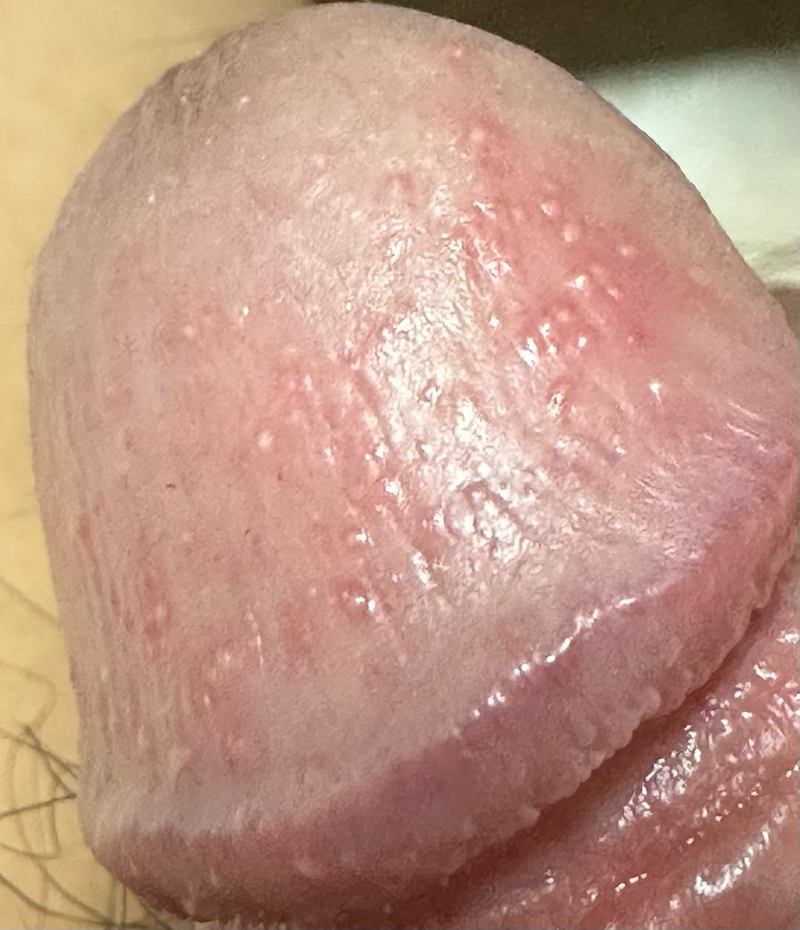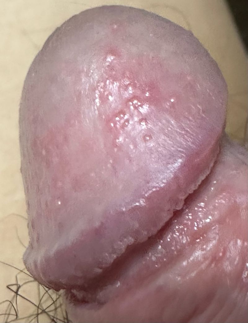 귀두와 표피부분에 이렇게 생긴 게 올라왔는데 성병 증상일까요? 약 2주 전 병원에서 귀두표피염 진단을 받긴 했었습니다. 현재는 저 증상과 연관있을진 모르겠지만 통증은 없이 약간의 가려움만 존재합니다. 최근 성관계는 없었습니다.