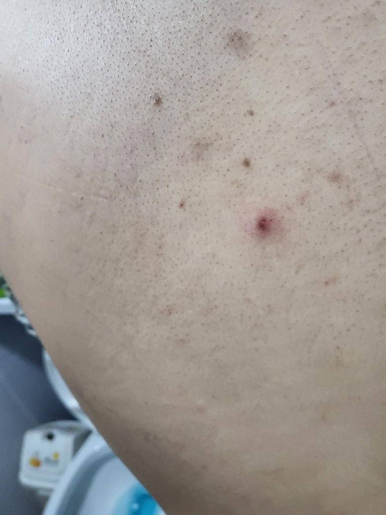 사진상 이게 성병인지 알고 싶습니다 어제 너무 불안해서 소변 검사하고 결과 기다리고 있는데 어제 샤워하고 등 보니까 이렇게 등드름 같은게 올라와서요