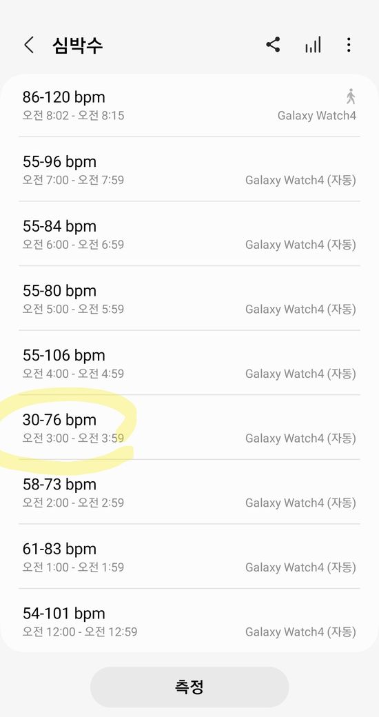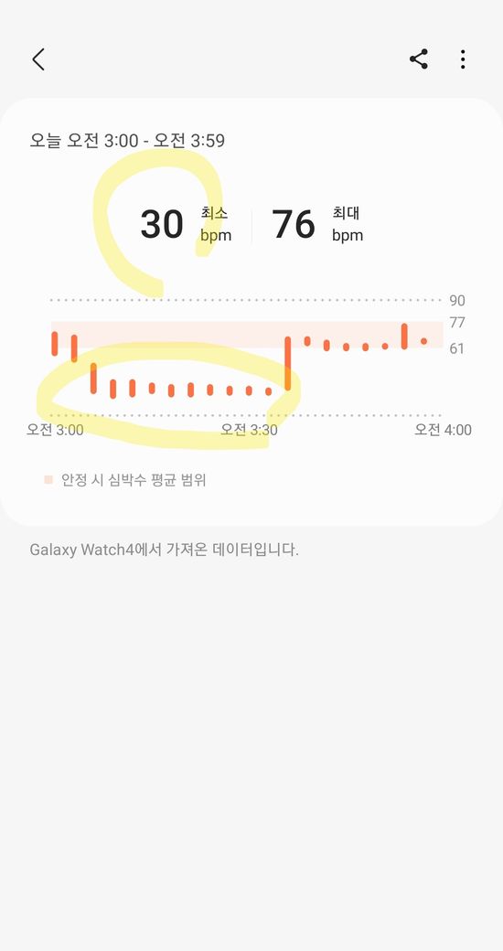 수면시 30분간 심박수 30대가 나왔는데 워치 오류일까요?
