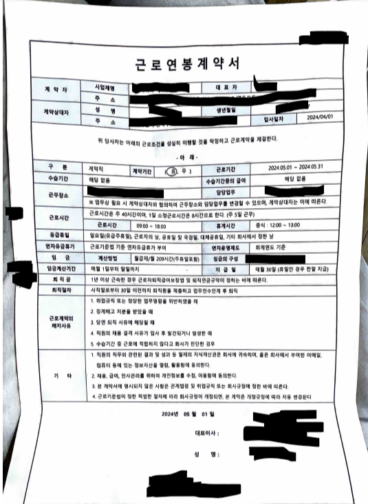 총 2개월 계약직 (임시직 아르바이트) 를 진행 하였으며, 1개월 근로연봉계약서를 작성하였습니다.