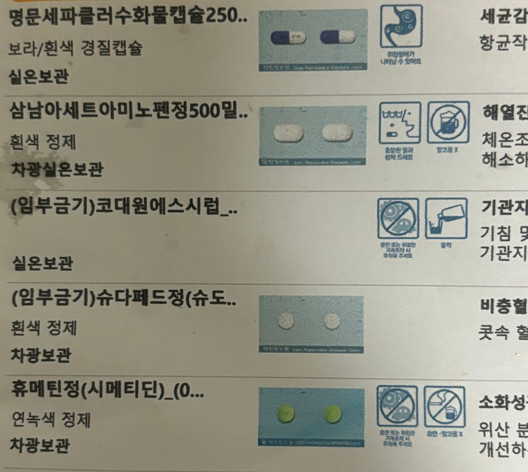 사진에 있는 약들을 처방 받았는데