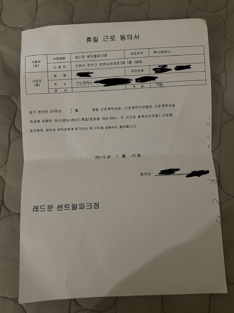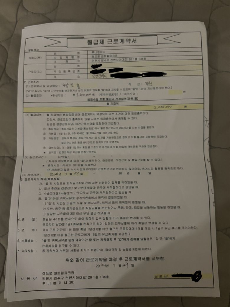 근로계약서를 여기뿐만 아니라 다른 곳에서도 쓰고 5인미만이라고 못준다고 합니다 또, 다 따지면 라스트오더가 끝나고 일찍 간거도 월급에서 까야된다고 하는데 이거도 맞는건지 궁금합니다 근로계약서는 밑에 첨부하겠습니다 또 다른 특이사항 있으면 알려주세요