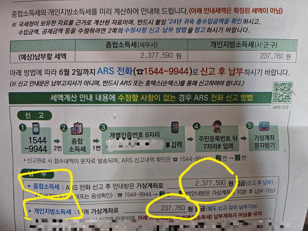 이번에 237만원 종합소득세 내라고