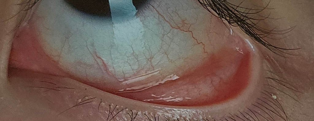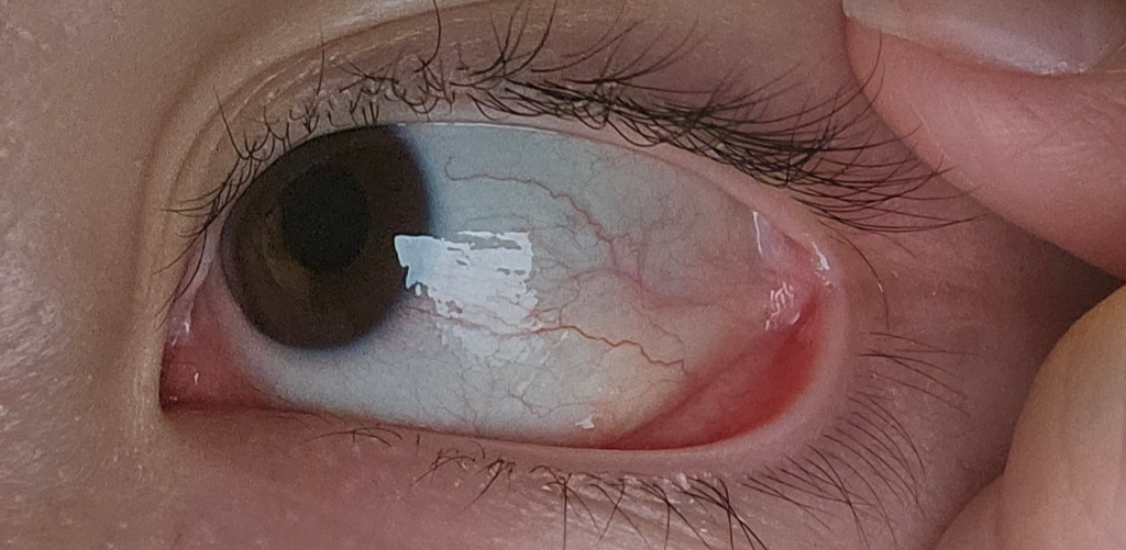 렌즈를 오래껴서 그런가 하고 뺏더니 이젠 아랫쪽으로 핏줄을 따라 충혈이 되었습니다 일반적인 핏줄이라기엔 좀 굵고 연하게 핑크빛이 도는 것 같습니다