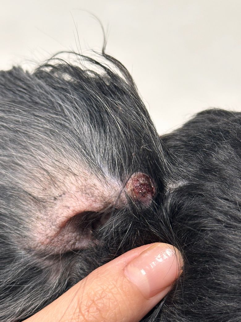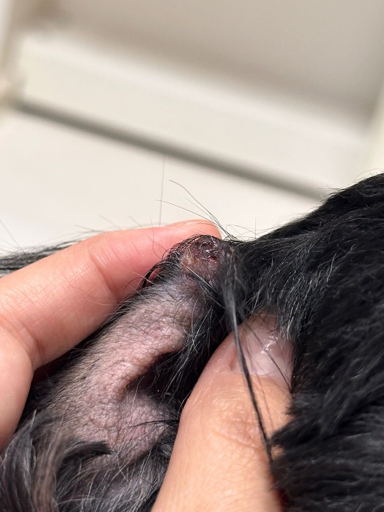 요약하면, 급성으로 생긴 단단한 몽우리는 대부분 염증이나 혈종으로 시작되지만, 만성 귀질환이 있는 아이에게서는 피지샘종, 섬유종, 혹은 염증성 육아조직도 가능성이 있습니다. 병원 내원 전까지는 넥카라를 유지하고 상처를 건조하게 관리하며, 통증이나 크기 증가, 출혈, 분비물 발생이 있으면 즉시 내원하시는 것이 좋습니다.