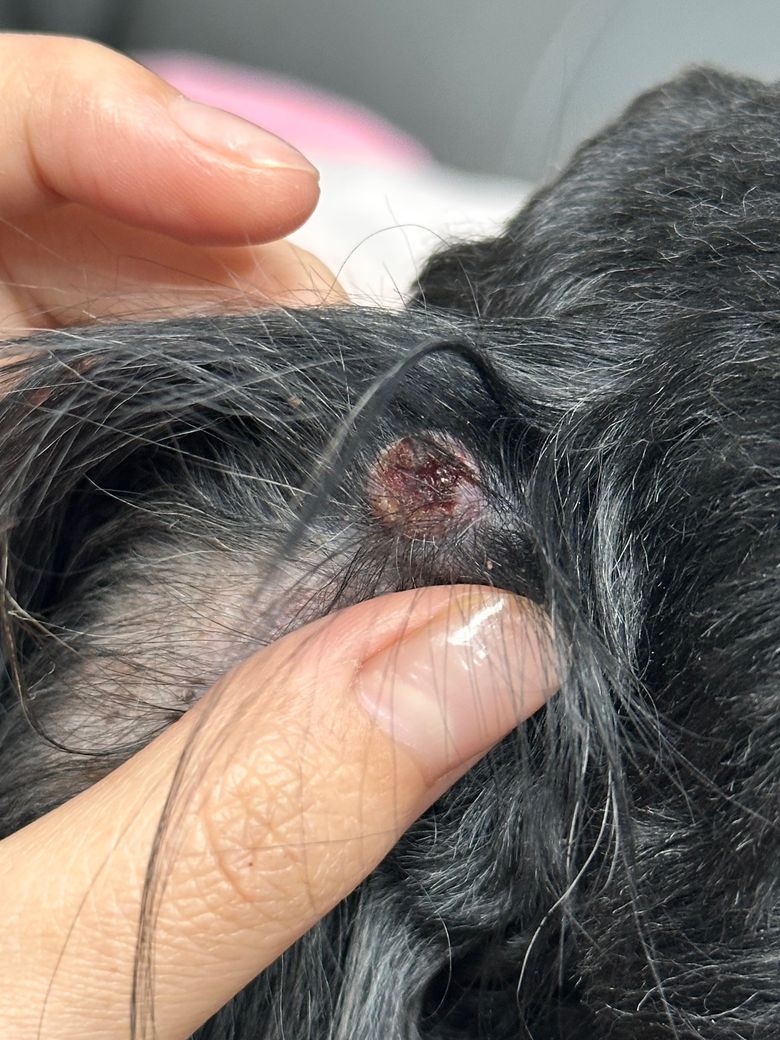 자택에서는 지금 해주신 것처럼, 넥카라를 유지해 긁지 못하게 하고, 딱지가 생긴 부위를 억지로 떼거나 소독제를 과도하게 바르지 않는 것이 좋습니다. 병원에서는 피부의 촉진, 세포검사(세침흡인검사), 필요 시 조직검사나 귀내시경 검사를 통해 원인을 구분하게 됩니다. 세포검사에서 염증세포만 보인다면 염증성 결절일 가능성이 높고, 비정상적인 세포 증식이 보이면 종양성 변화(피부종양, 지방종, 피지샘종, 혹은 희귀하게 편평상피암 등)를 의심하게 됩니다.