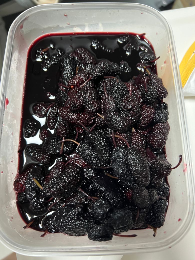 사진으로 보면 사진상 열매는 '오디' 인것으로 보입니다. 오디는 뽕에서 나는 열매로 면역력에 좋은 열매이니 맛있게 드셔보세요.