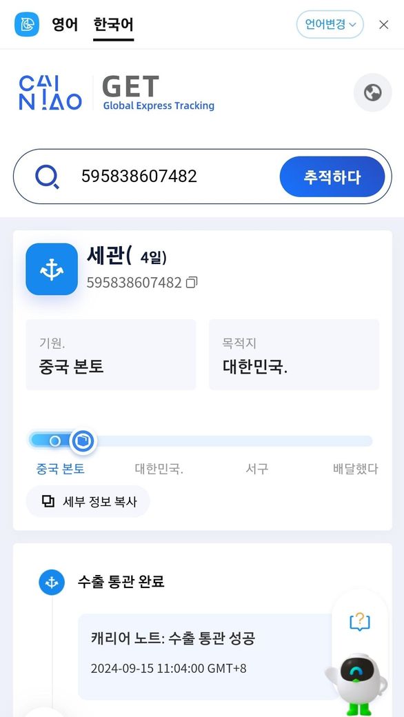 배송예정일은 알리익스프레스에서 10월 02일 이라고 되어있는데, 통관완료 라고 뜨는데 그보다 더 일찍 올까요?