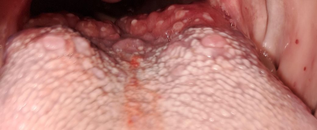 이틀전부터 목이랑 혀가 너무 아파서 사진 찍어보니 이렇게 올록볼록 뭔가가 올라오고 엄청 빨간데 왜 이런걸가요? 이 상태에 탄튬해도 안아플까요?